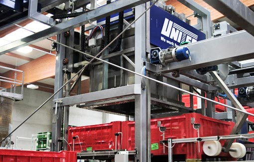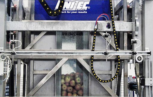 RBW 300 – автоматический, чрезвычайно деликатный наполнитель бинов, который использует специальную технологию вытяжки воздуха, создающая вакуум постепенно, и позволяя заполнять бины яблоками деликатно и равномерно. Он может быть совмещен с автоматическими системами маркировки UNI TRACER и роботом-штабелировщиком UNI ROBOCLAMP.